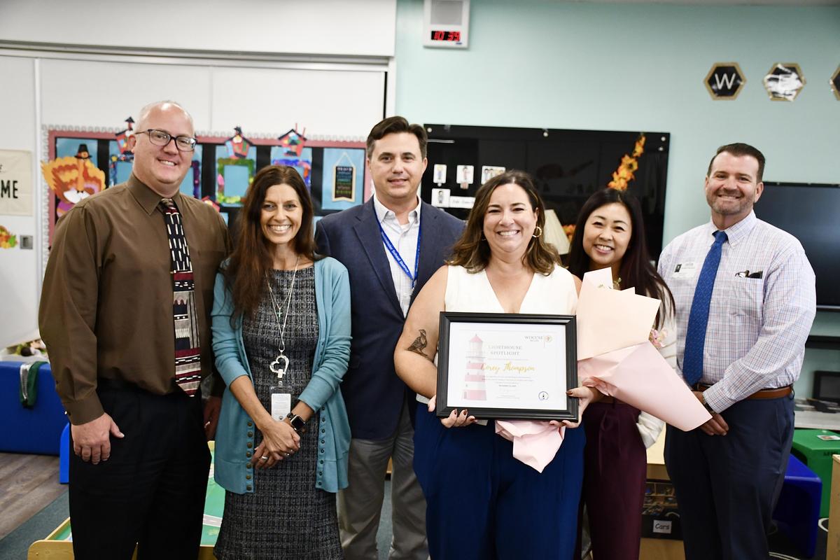 November Lighthouse Spotlight: Corey Thompson Preschool Special Education Teacher, Land Early Learning Center in Westminster School District We were thrilled to recognize Corey Thompson, Preschool Special Education Teacher at the Land Early Learning Center in Westminster School District, as our November Lighthouse Spotlight Award recipient. Corey was all smiles and had tears in her eyes when she was surprised with the recognition. She shared how meaningful it felt to be seen. She also laughed and said her colleagues had "got me twice already," referring to the CalECSE award she received just one month earlier. Moments like this remind us why it is so important to spotlight our incredible educators who light the way for students, families, and colleagues. Corey’s dedication to early childhood special education is truly exceptional. Her work is not just a role or a passion. It is part of who she is. Her classroom radiates belonging, acceptance, and joyful learning. Every detail is intentionally designed to be accessible and engaging so that every student, regardless of ability or background, can shine. It is a space where challenges become opportunities and where children who may struggle in other settings suddenly find their confidence. Corey brings warmth, creativity, and steady encouragement to every moment. Whether she is singing, dancing, modeling communication supports, or partnering with families and colleagues, she embodies what it means to be a Lighthouse. She guides others with hope, heart, and unwavering dedication. This recognition comes shortly after Corey received the California Early Childhood Special Education Network (CalECSE) "Be the One" Award, a statewide honor given to individuals who go above and beyond for young learners. Out of dozens of nominations throughout California, Corey’s outstanding commitment stood out. Corey, thank you for being a beacon of light for your students, their families, and the WSD community. Congratulations. We are so proud to celebrate you this month.
